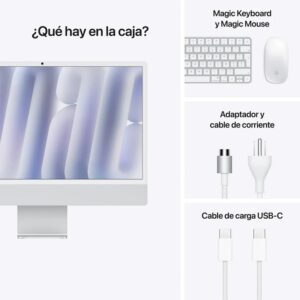 La Apple iMac 24” con chip M4 en color Silver redefine la potencia y el diseño en un solo equipo. Su CPU de 8 núcleos y GPU de alto rendimiento garantizan velocidad y eficiencia en cada tarea. La espectacular pantalla Retina 4.5K de 24 pulgadas ofrece colores vibrantes y detalles nítidos para una experiencia visual inigualable. Con 16GB de RAM y 256GB SSD, brinda un rendimiento ágil y almacenamiento veloz. Su diseño ultradelgado y elegante lo hace ideal para profesionales, creadores y usuarios.